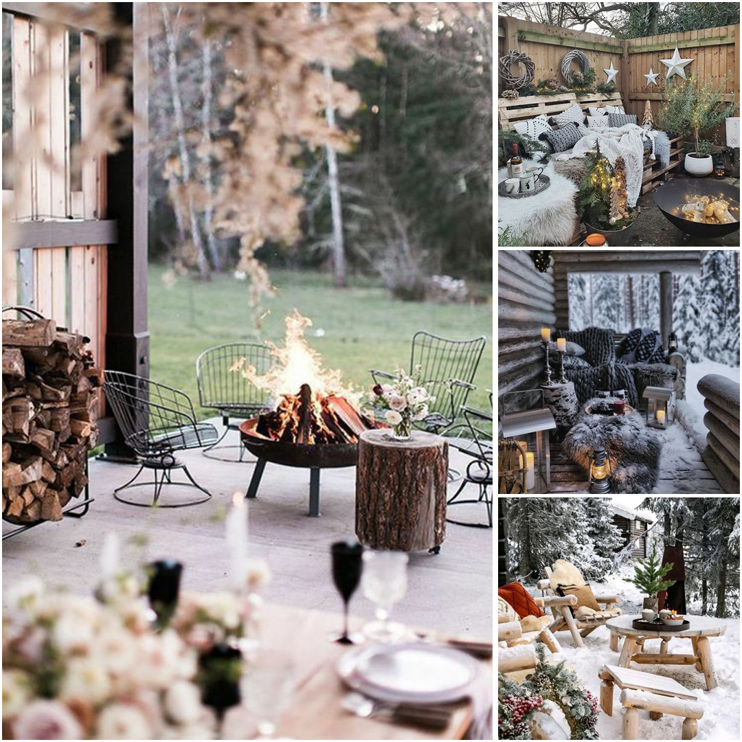 A nice outdoor furniture set with some blankets and pillows could be just what you need to start creating those special winter evenings. You can go big, with a sofa, chairs and table, or create a beautiful outdoor dining area with an outdoor dining table and chairs, just make sure your furniture is winter-hardy. The solution is to choose materials that are resistant to humidity and freezing temperatures, such as metal, teak, or wicker that is resistant to all weather. Add a cozy touch with outdoor blankets and weather-resistant pillows to make your outside feel more cozy.