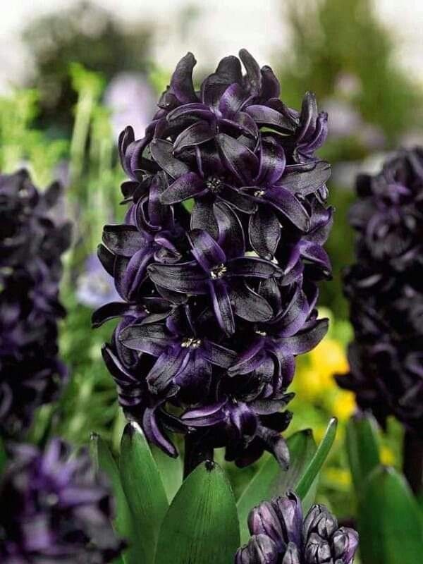 Los jacintos son conocidos por su dulce fragancia, y ‘Midnight Mystic’ no es la excepción. Esta rara variedad presenta flores de color morado oscuro intenso que resaltan en los jardines primaverales.