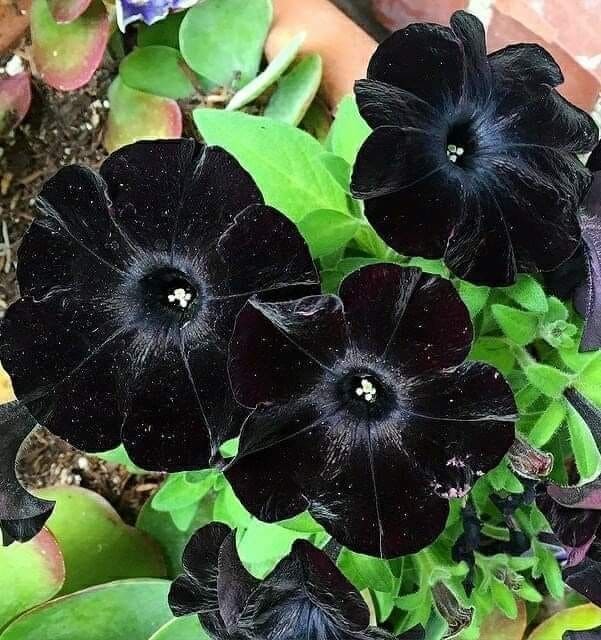 La petunia de terciopelo negro es una de las flores más espectaculares que encontrarás. Sus pétalos, de un negro intenso y aterciopelado, parecen absorber la luz, creando una apariencia casi sobrenatural.