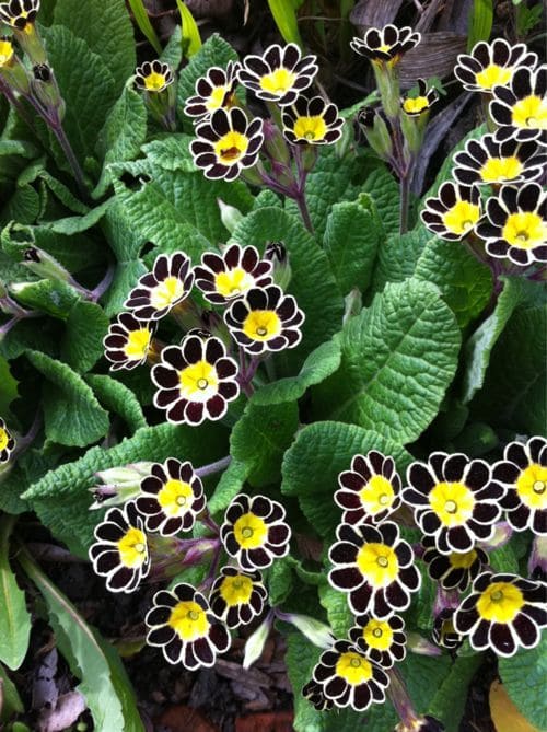 Primula ‘Silver Lace’ es una encantadora variedad de prímula que cuenta con pétalos de color negro granate intenso con bordes plateados o dorados.