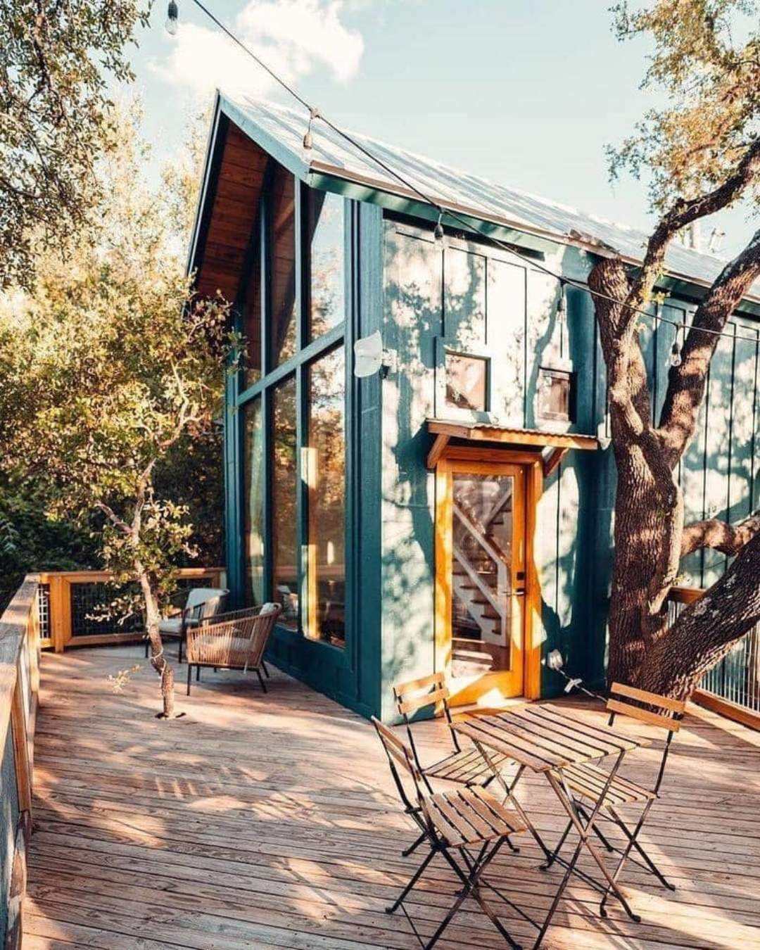 Tiny houses are generally built in places far from city life and close to natural habitats. For example, you can find these houses by the sea or in the middle of a beautiful forest. For example, this 35m2 emerald tiny house model fascinates those who see it with its emerald green color and unique architecture.