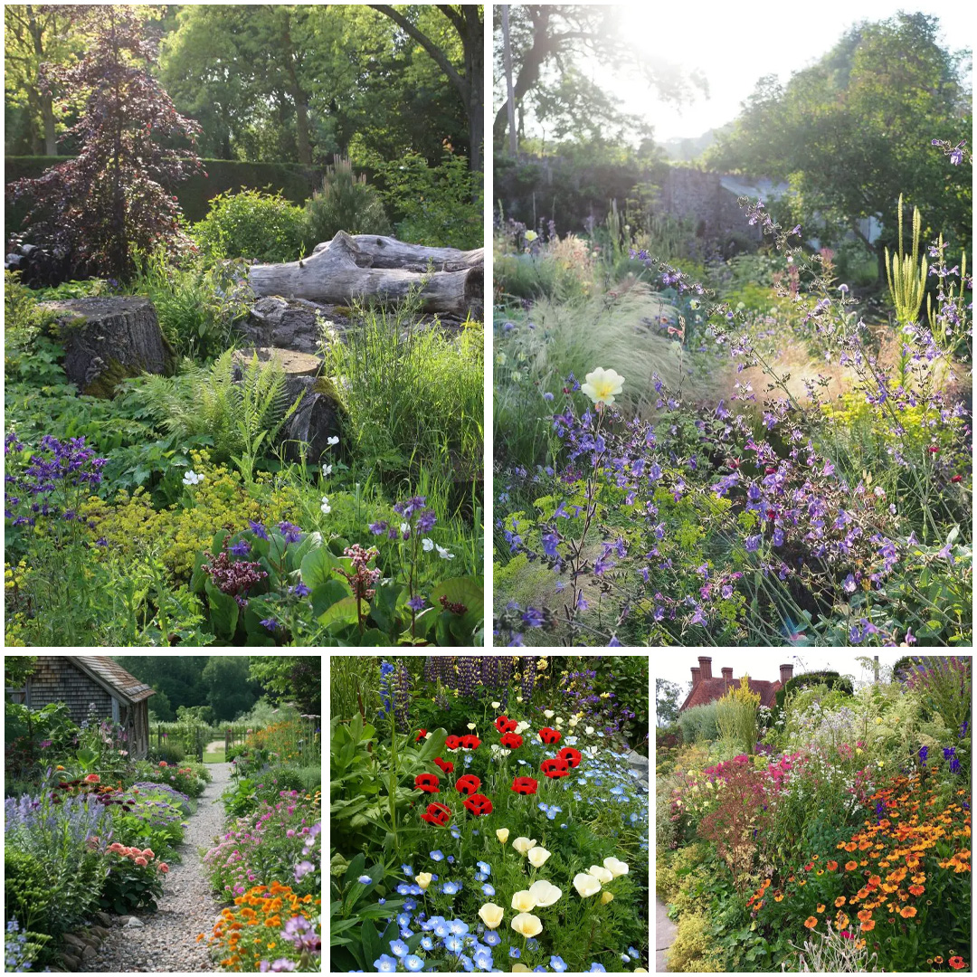 Este jardín inglés presenta una plantación clásica y un topiario y una parte caótica con hierbas y flores mezcladas y combinadas.