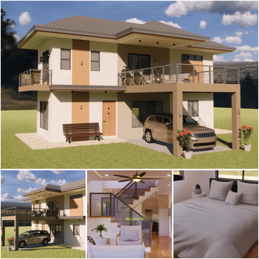 This modern two-story tiny house offers a well-thought-out design, with balconies on the upper floor and a garage on the ground level. The home is compact yet makes the most of its space. It provides a comfortable and functional living environment.